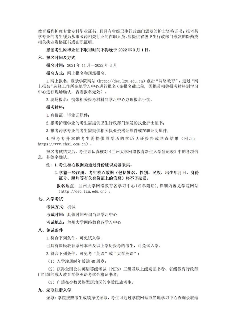 兰州大学网络教育2022年春季招生简章