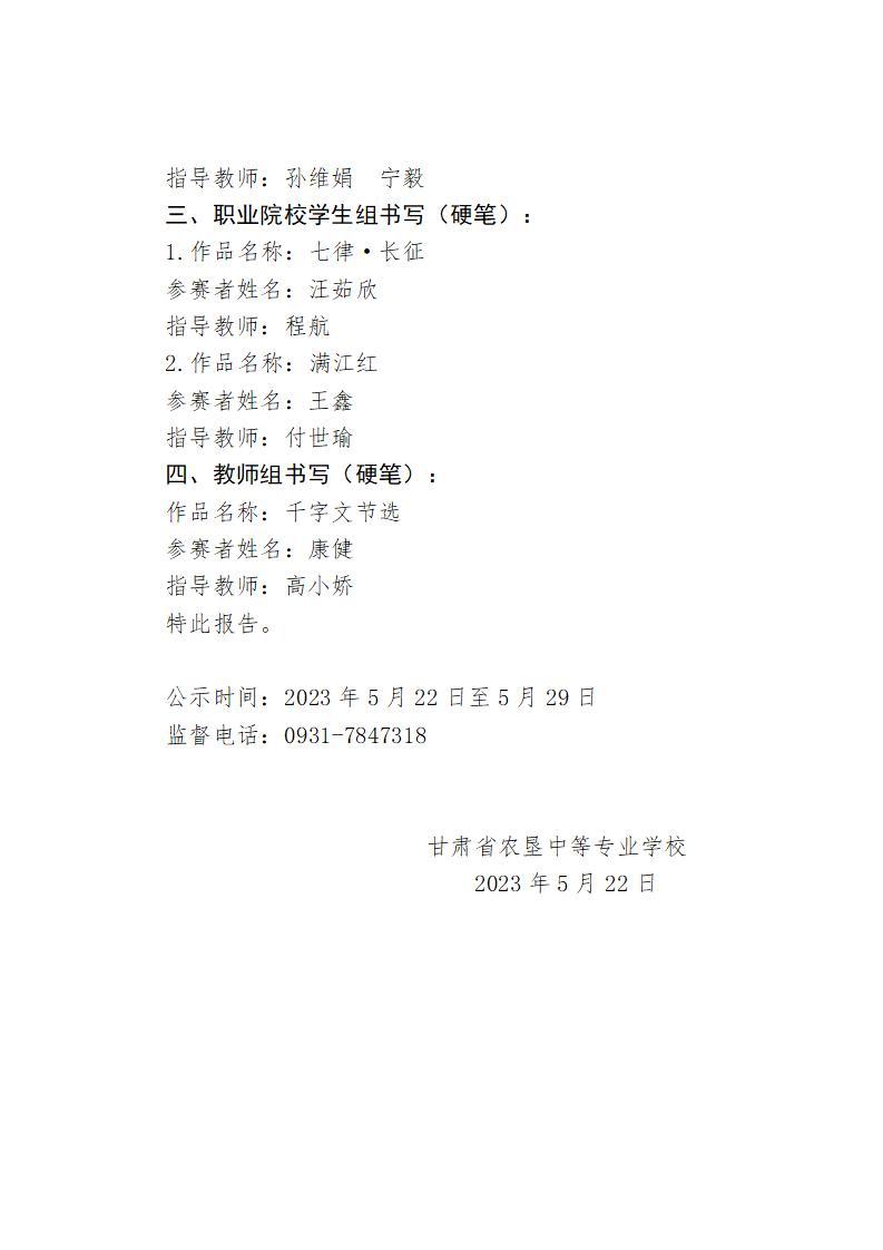 关于参加第五届中华经典诵写讲大赛省级初赛作品的公示