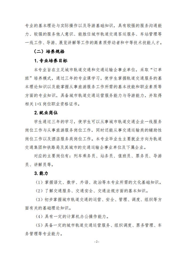 城市轨道交通运营服务专业人才培养方案