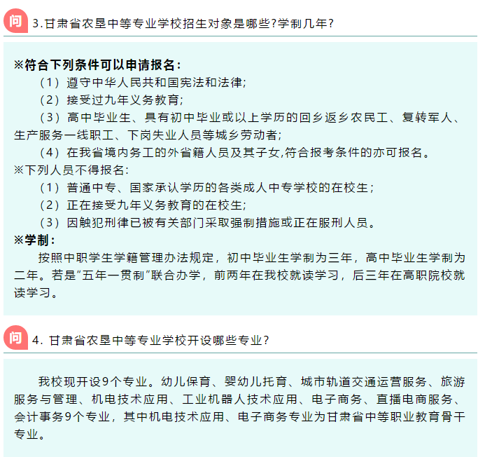 答考生问甘肃省农垦中等专业学校2022年招生报名和录取,你关心的都在这里!