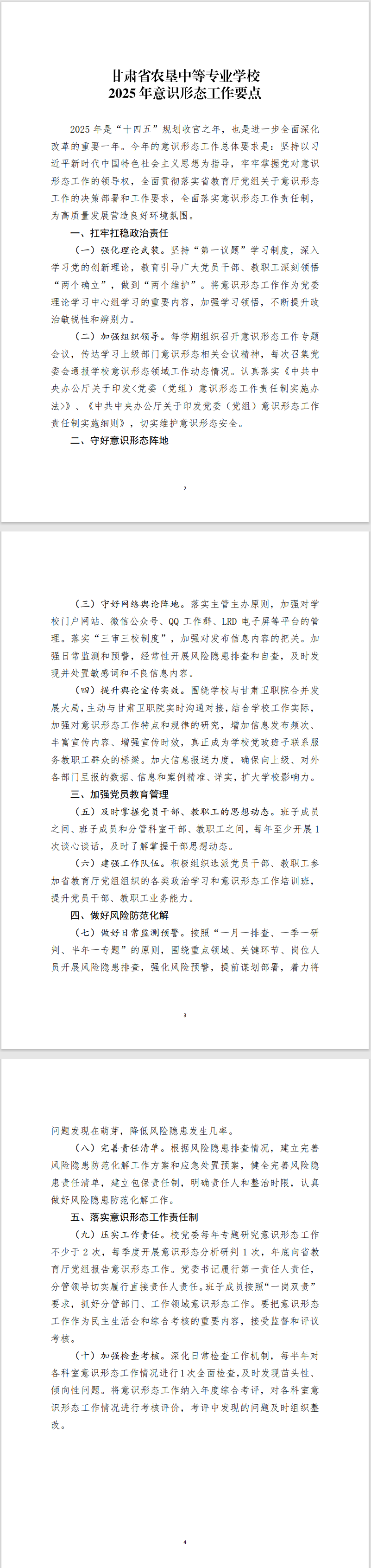 关于印发《甘肃省农垦中等专业学校2025年意识形态工作要点》的通知